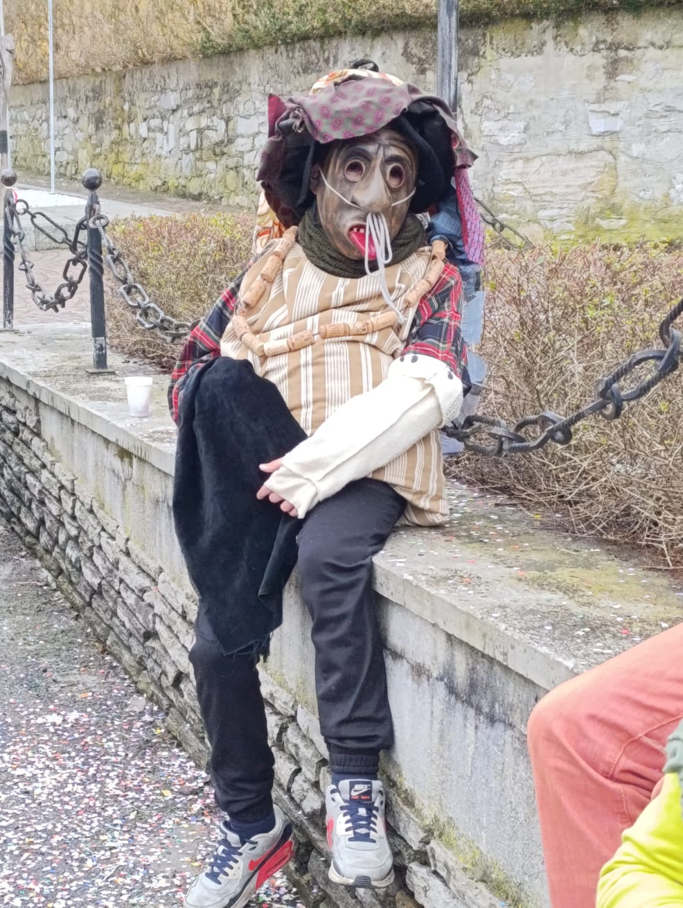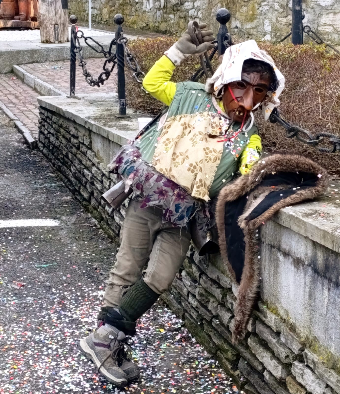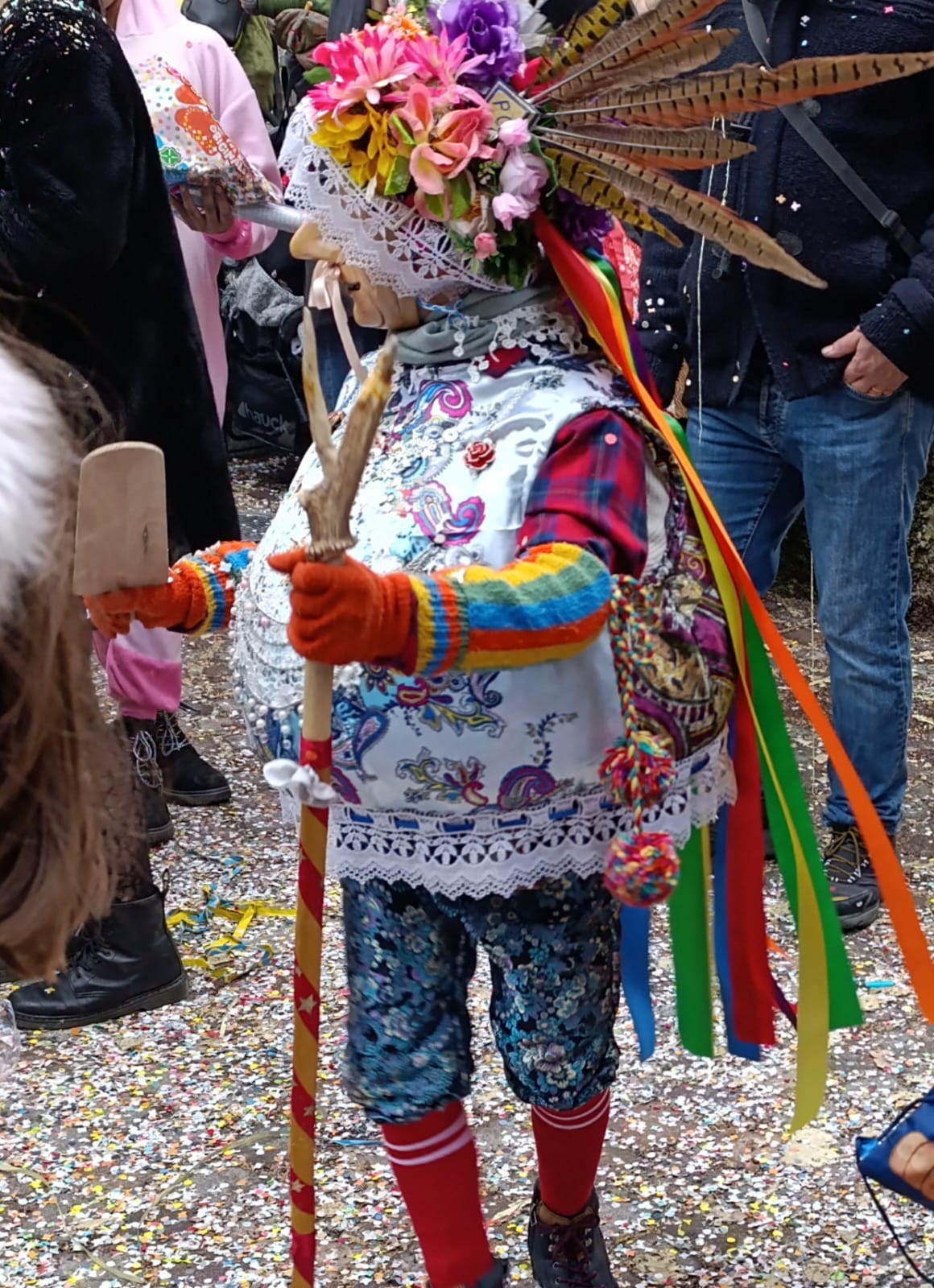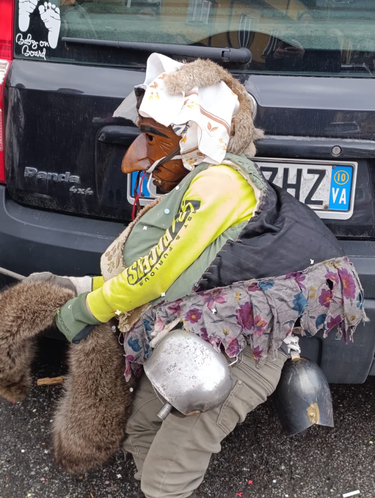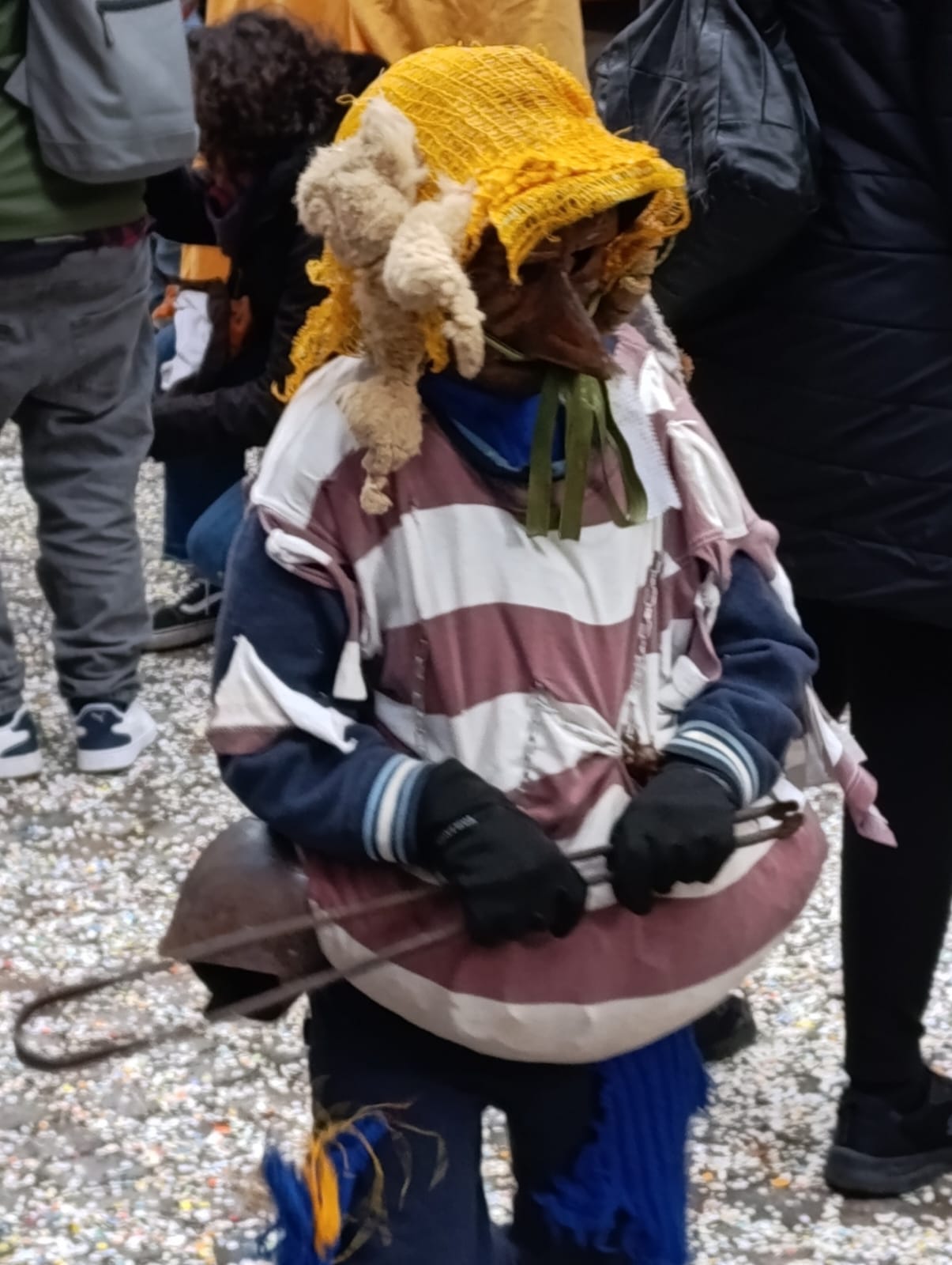One of the most recognisable figures is La Ciocia, traditionally played by a man. Loud, energetic, and ironic, she follows the Mascarun through the streets, adding humour and chaos to the celebration.